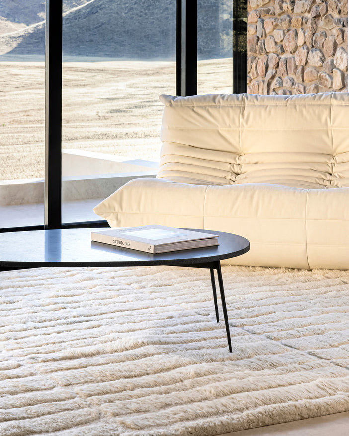 Interior Designer and Founder of Home EC., Natalie Papier, recognizes the impact a statement rug can have on a space. “Rugs in a space are so important,” Natalie says. “They define seating areas, add warmth to a room, ground a space and add another textural quality.”