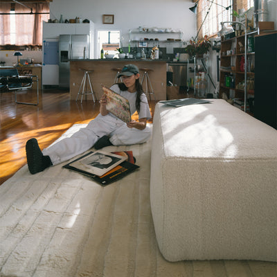 Photographer and model Joanna Halpin’s mid-century home in Garrison, New York, reflects her love for refined Japanese design. Featuring the Raksha Rug, her space is a serene blend of timeless style and intimate rituals, creating a calming retreat from the city's hustle and bustle.